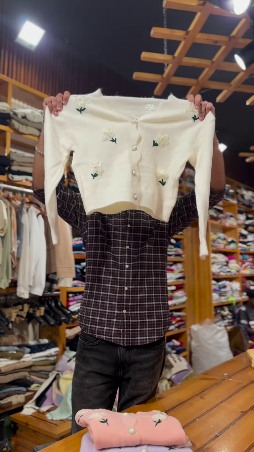 Infuse charm and softness into your catalog with this trio of Floral Embroidered Knit Cardigans. Featuring delicate white floral motifs and pearl-style buttons, these pastel-toned sweaters offer cozy texture and visual elegance. Ideal for folded stacks, rack displays, or bundled knitwear edits. Available in Light PurpleLight Blue, and Pink variants. 🌸✨