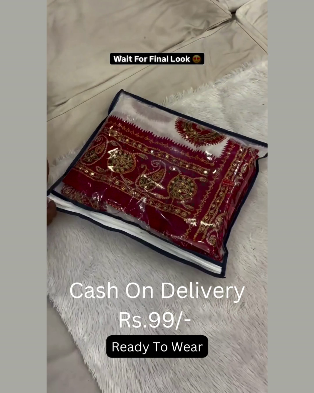 Ironing: Use a steamer or a very cool iron on the reverse side only; never apply direct high heat to the metallic zari or sequins.