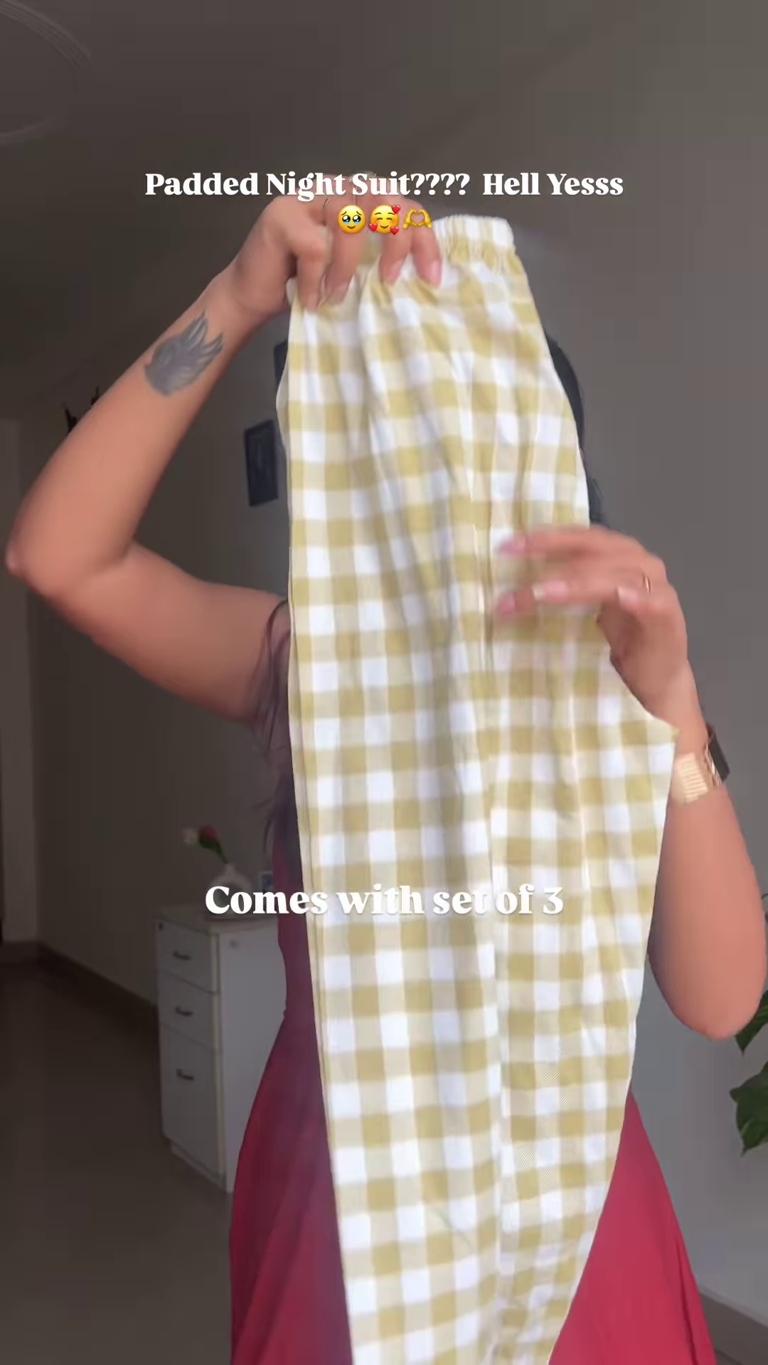 Padded Cotton Night Suit – Yellow Gingham Co-Ord Set for Ultimate Comfort & Style