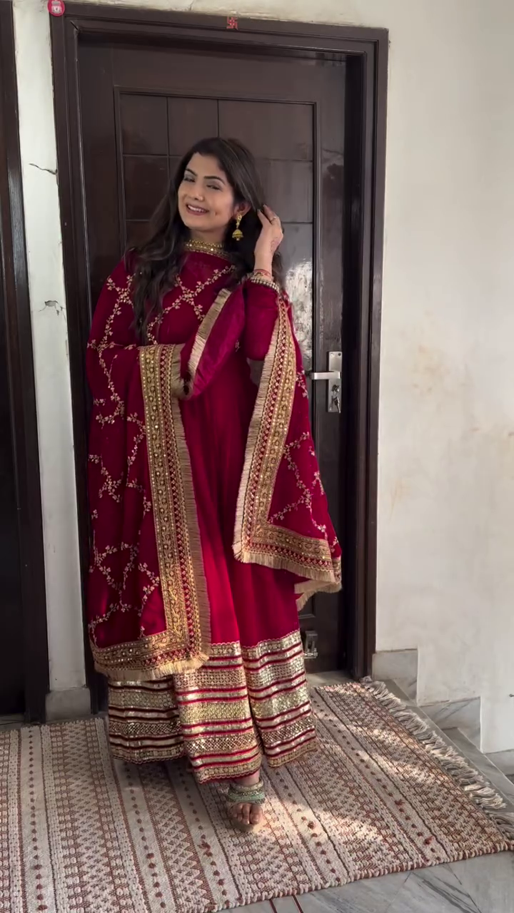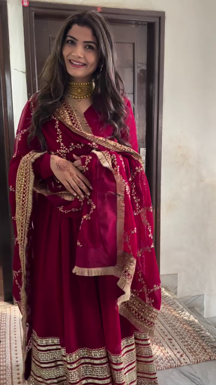 Regal Maroon Embroidered Anarkali Suit