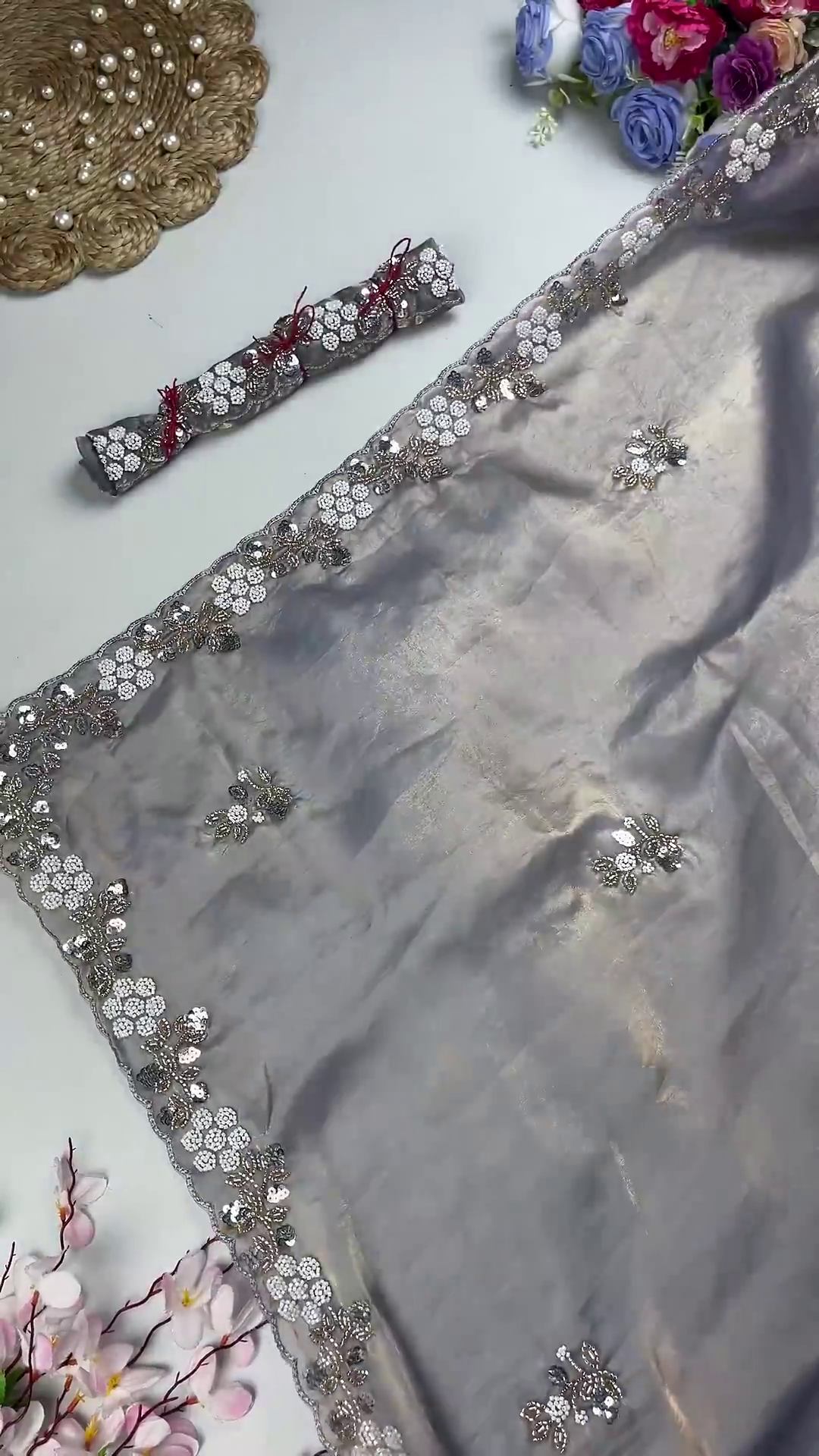 | Embroidery | Silver Zari • Sequin Work • Scalloped Bordering |