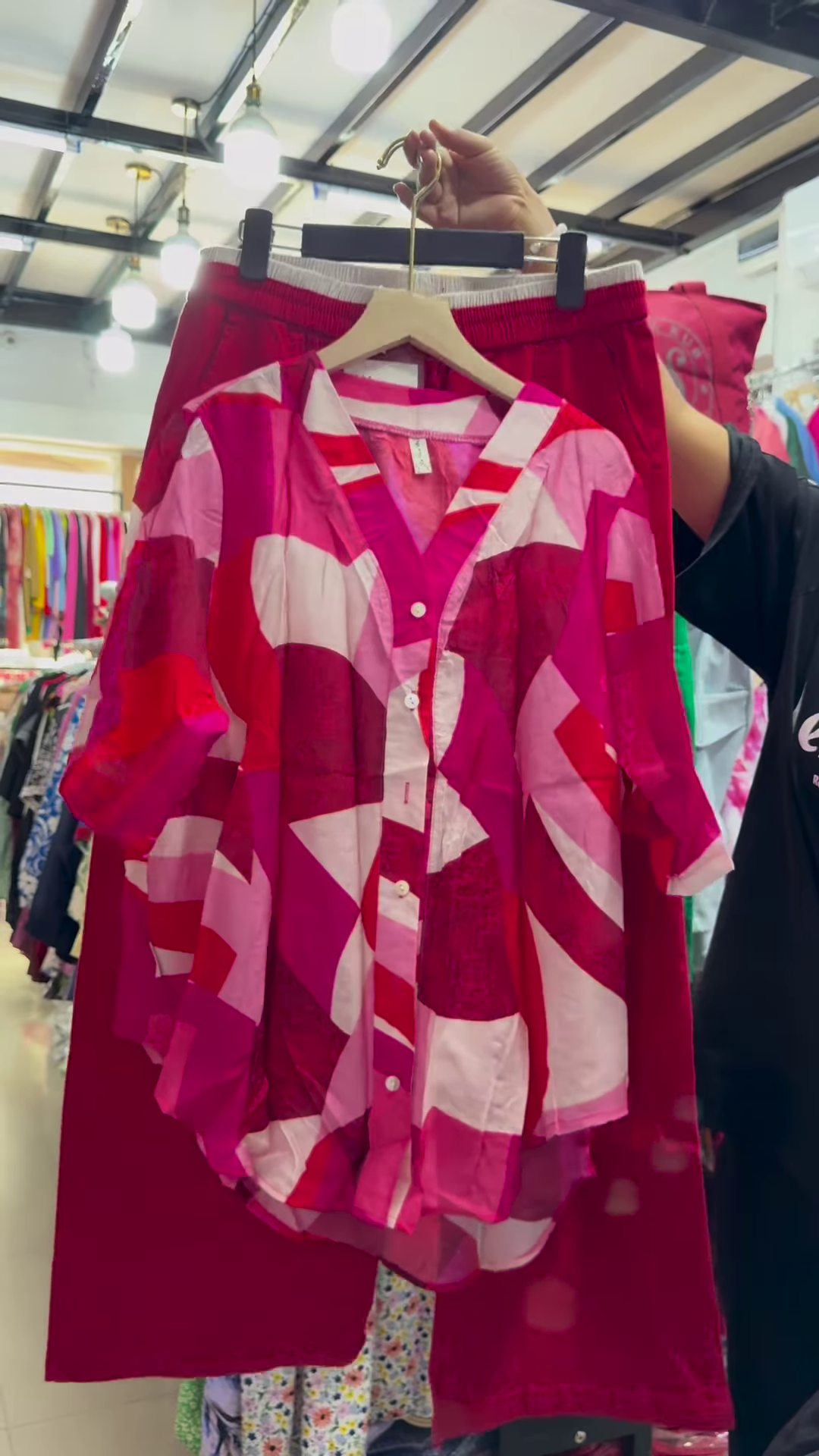 Together, the outfit invites playful accessorizing. Think chunky sneakers or flats, neutral handbags, and minimalist jewelry to complement the geometric theme. The balance of bold and simple lends itself well to monochrome layering or seasonal mix-and-match experiments. Great for college wear, high-street fashion spreads, or boutique capsule collections, the outfit works across a range of occasions and environments.