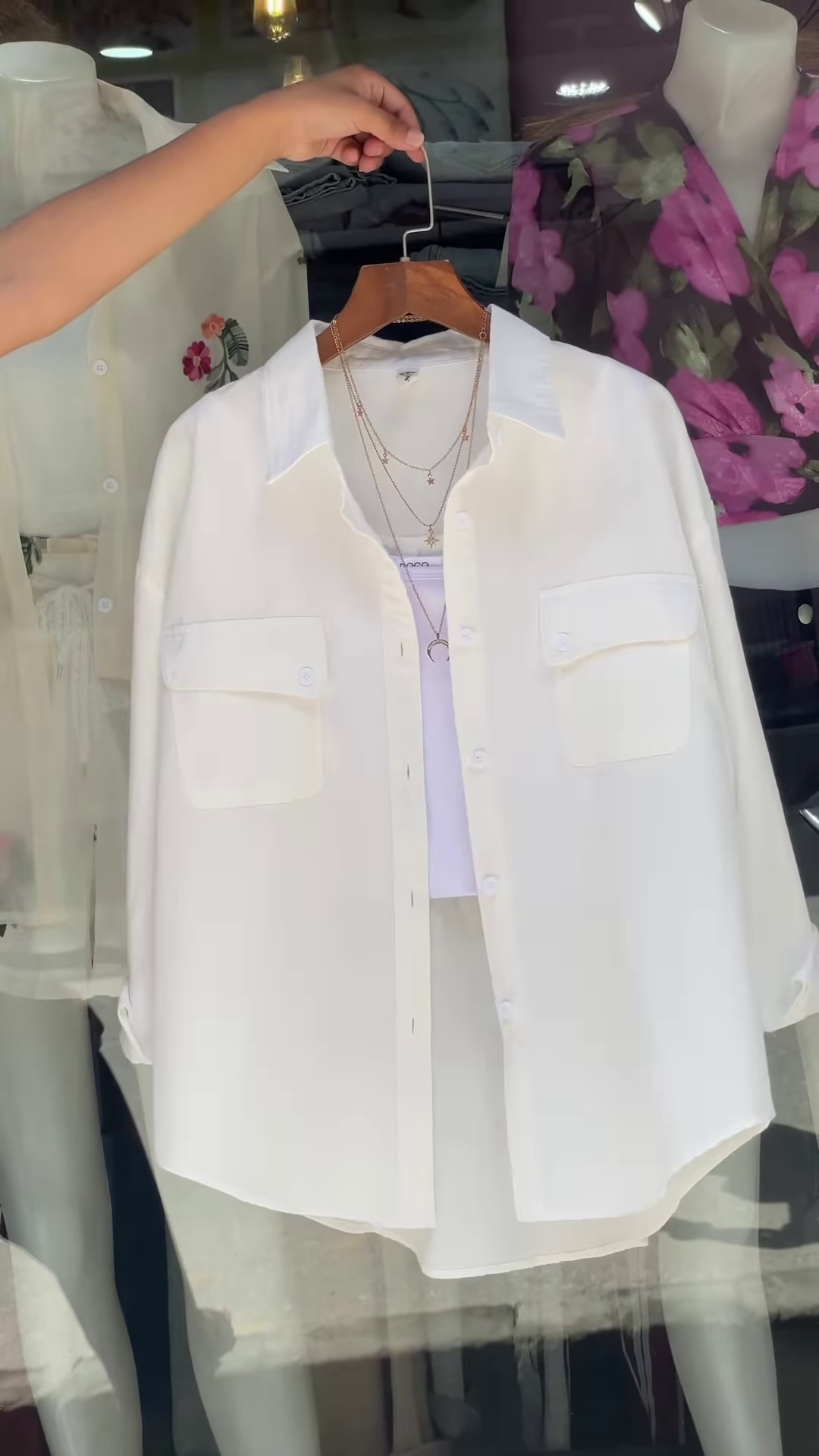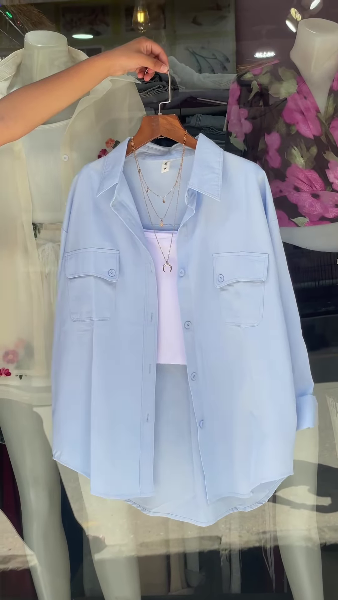 The shirt is designed with a classic collar and a full button-down front, allowing for versatile styling options. Its oversized fit is a key characteristic, providing a relaxed and comfortable silhouette that is both on-trend and incredibly easy to wear. This generous cut ensures ample movement and a flattering drape for various body types. Adding to its utilitarian chic, the shirt features two prominent chest pockets with flap closures, contributing to a structured yet casual aesthetic. These pockets are not only a stylish detail but also offer practical functionality.