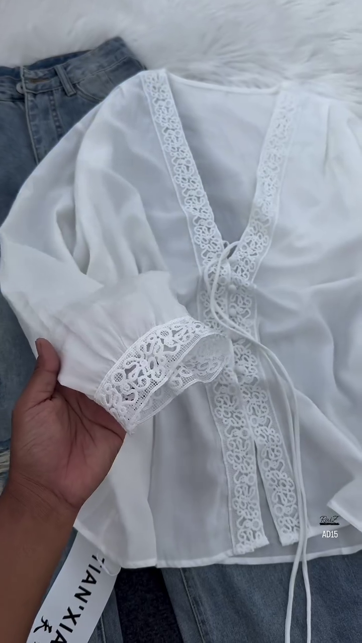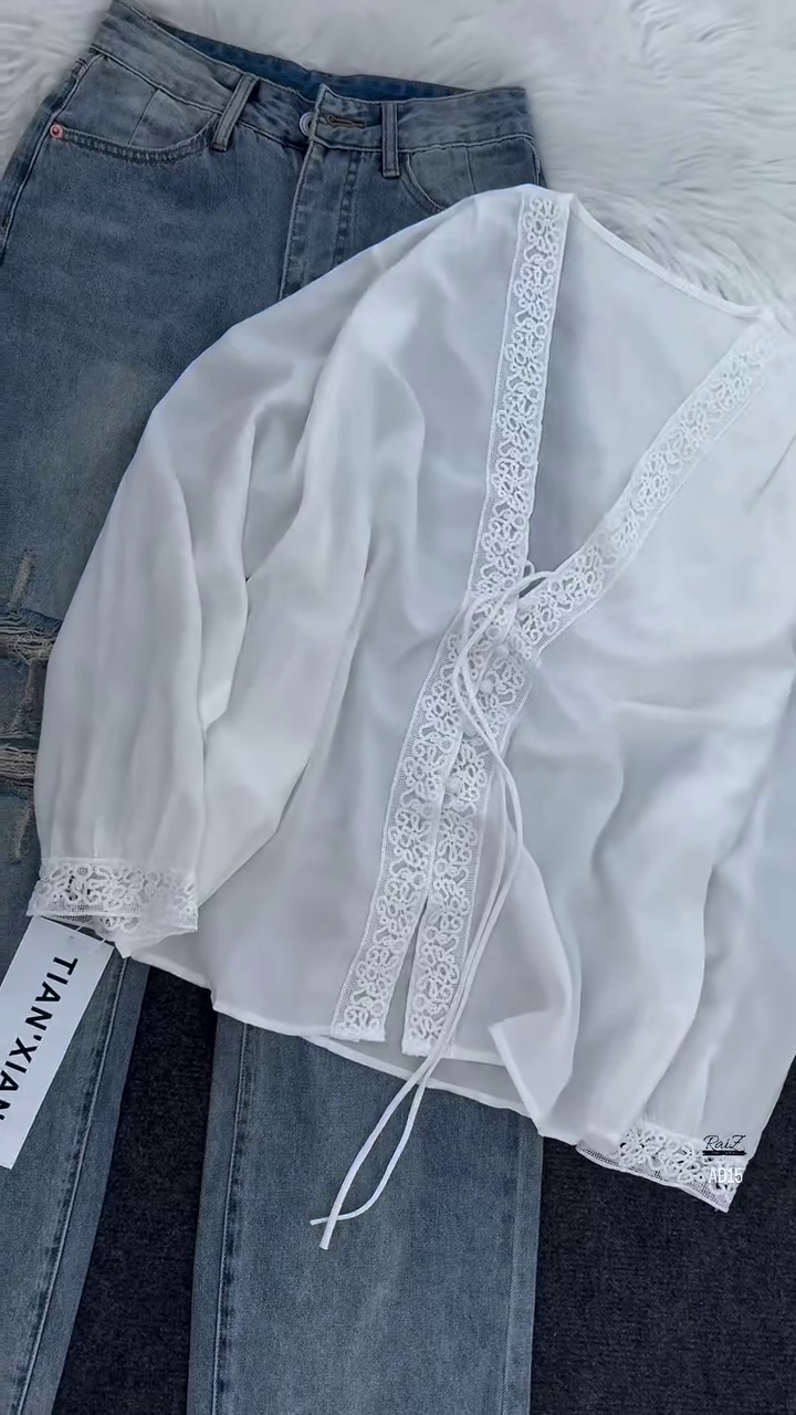Perfect for casual outings, coffee dates, or semi-formal gatherings, this outfit can be styled in multiple ways. Pair with flats or white sneakers for an easygoing daytime look, or switch to heeled sandals or ankle boots for a chic evening appearance. Add a crossbody bag or delicate jewelry to highlight the blouse’s lace details.