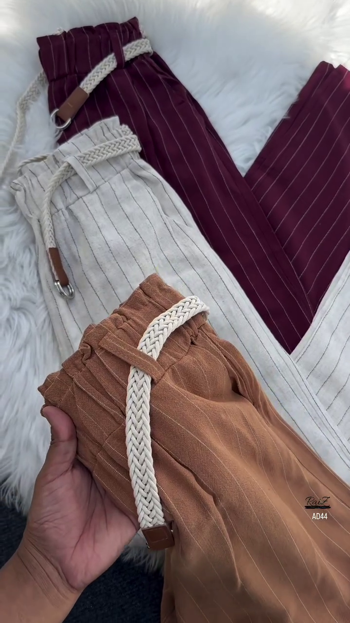Whether you’re aiming for smart casual or relaxed elegance, the AD44 Women’s High-Waist Striped Pants with Braided Belt deliver style, comfort, and sophistication in one versatile piece.